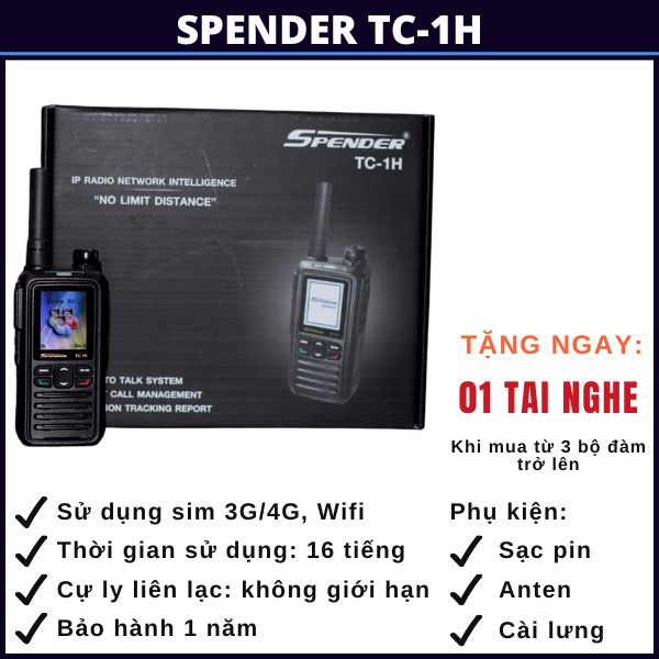 BỘ ĐÀM 3G/4G SPENDER TC-1H GỒM: