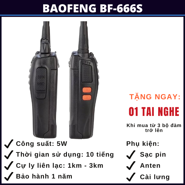 BỘ ĐÀM BAOFENG BF-666S GỒM: