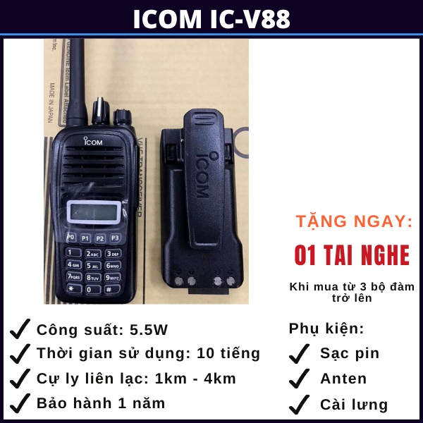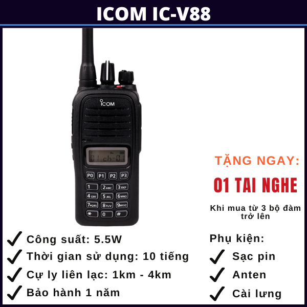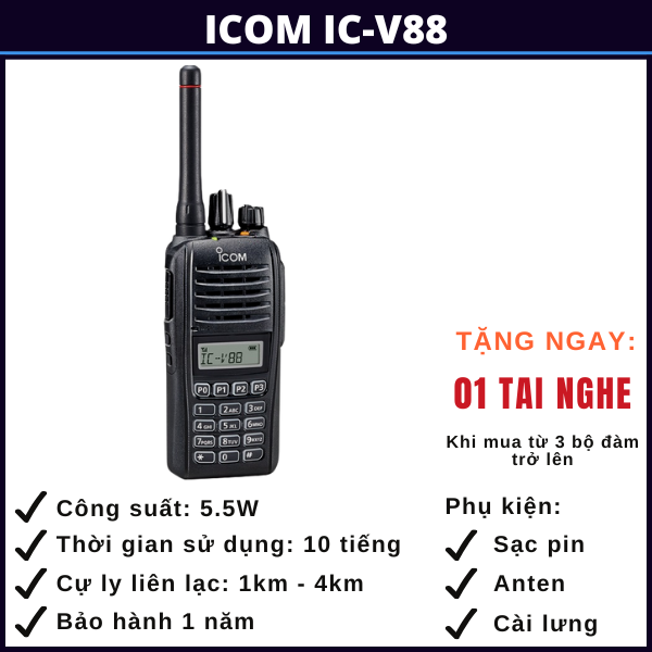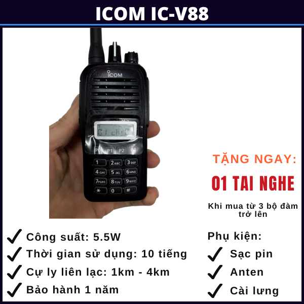 BỘ ĐÀM MOTOROLA ICOM IC-V88 GỒM: