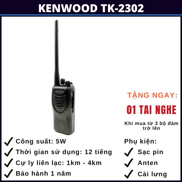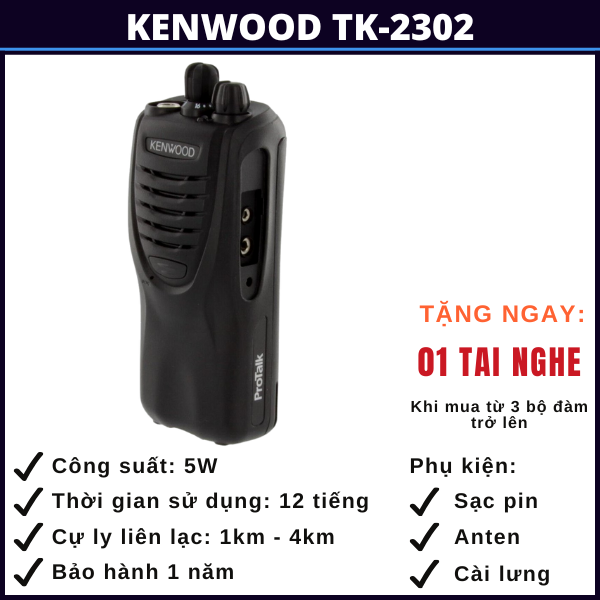 BỘ ĐÀM KENWOOD TK-2302 GỒM: