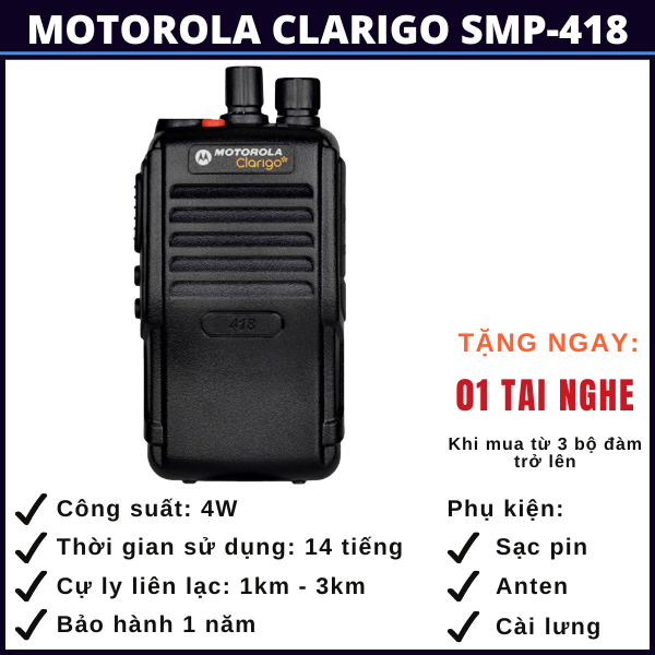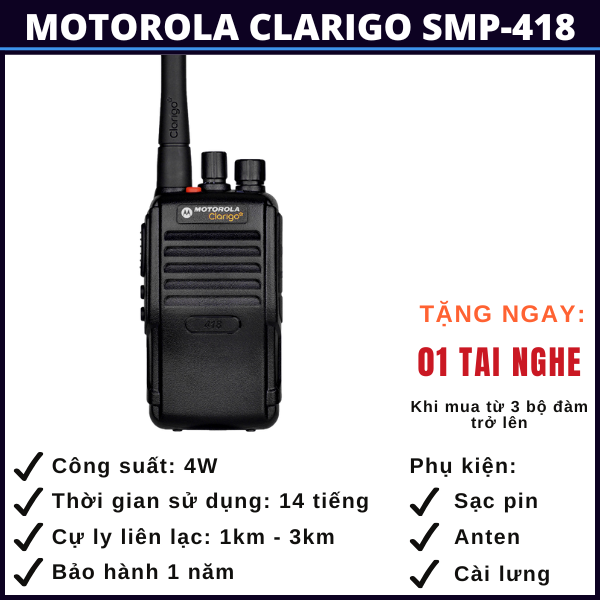 BỘ ĐÀM MOTOROLA CLARIGO SMP-418 CHÍNH HÃNG