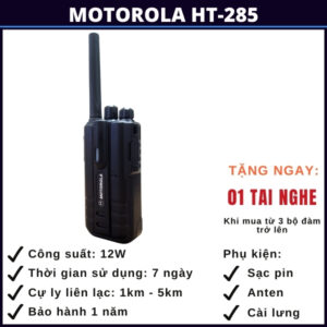 Với công suất phát sóng mạnh mẽ lên đến 12W và anten chất lượng cao, HT-285 của Motorola đảm bảo rằng bạn luôn có kết nối ổn định và rõ ràng với trong quá trình liên lạc. Tính năng giảm tiếng ồn cũng giúp cải thiện chất lượng âm thanh trong môi trường nhiều tiếng ồn.